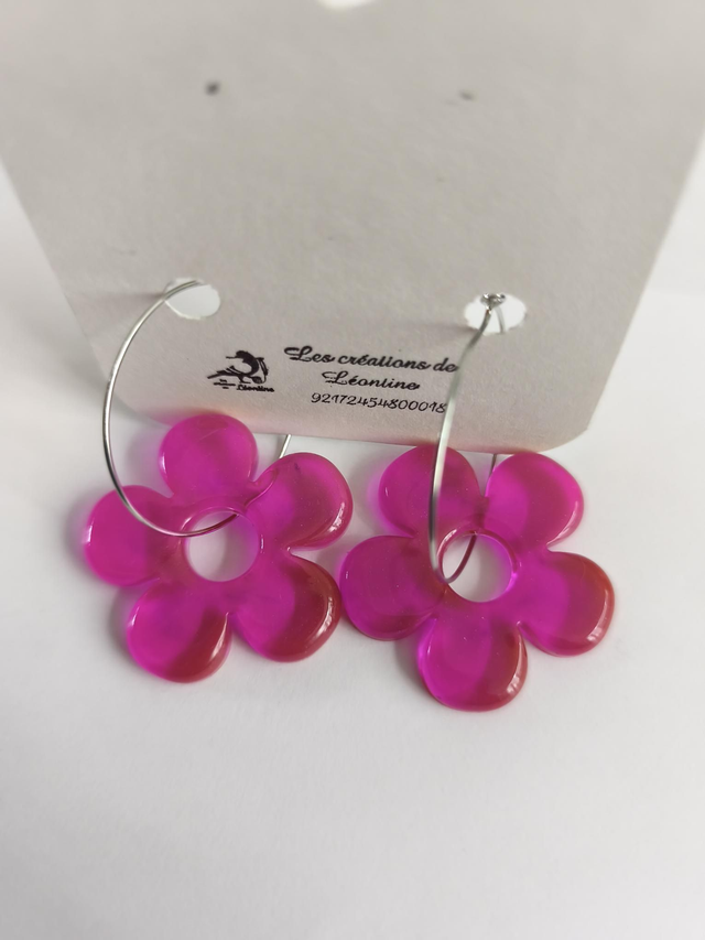 Créoles fleurs rose
