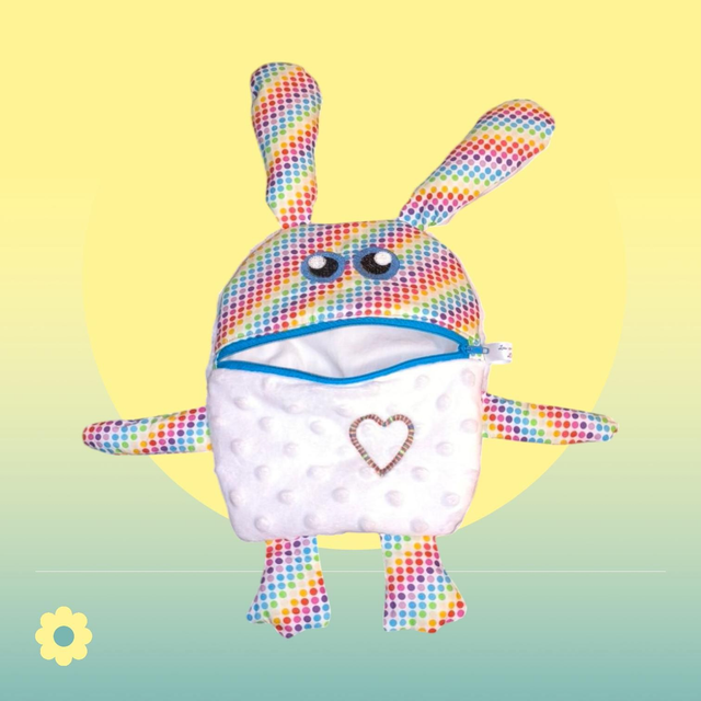Un Mange-soucis c’est un doudou monstre rigolo qui se nourrit des petits tracas, des peurs et préoccupations des petits et des grands. L’enfant dessine, écrit ou fait écrire ce qui l’ennuie sur un morceau de papier qu’il glisse à l’intérieur de sa bouche en fermeture éclair.