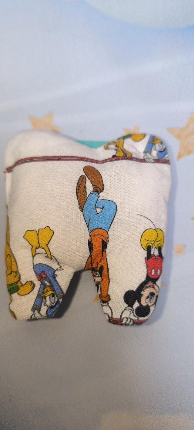 jolie pochette à dents de lait en tissu avec fente à l'avant pour y mettre la dent afin de le glisser sous l'oreiller afin que la petite souris échange la dent de lait contre une pièce